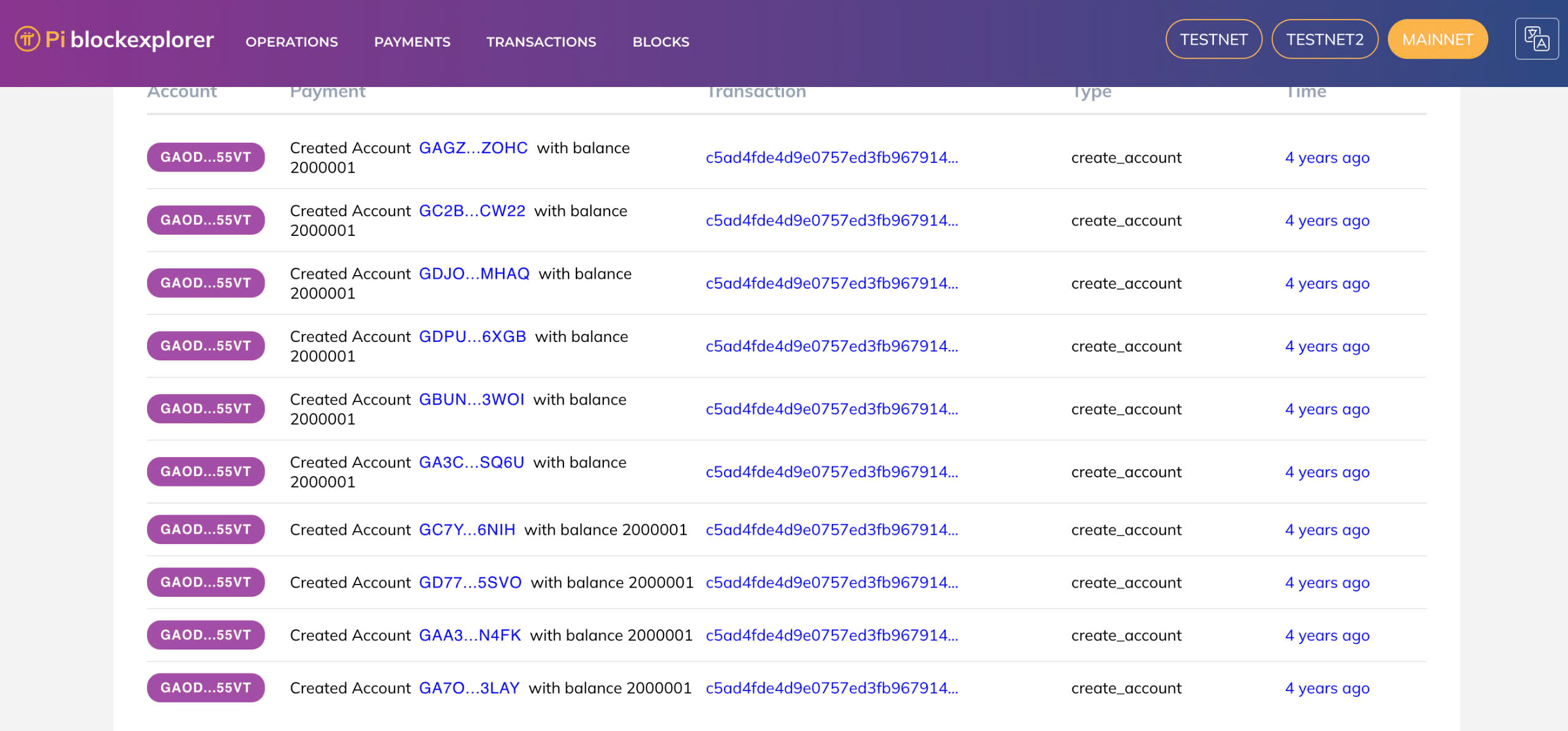 Một hoạt động thú vị của blockchain Pi, có một ví lớn ban đầu sở hữu 20 tỉ Pi coin đã được chia nhỏ thành 10.000 “ví triệu phú”, mỗi ví 2 triệu Pi, bạn có thể thử quan sát địa chỉ ví sau đây trên chuỗi khối của Pi.